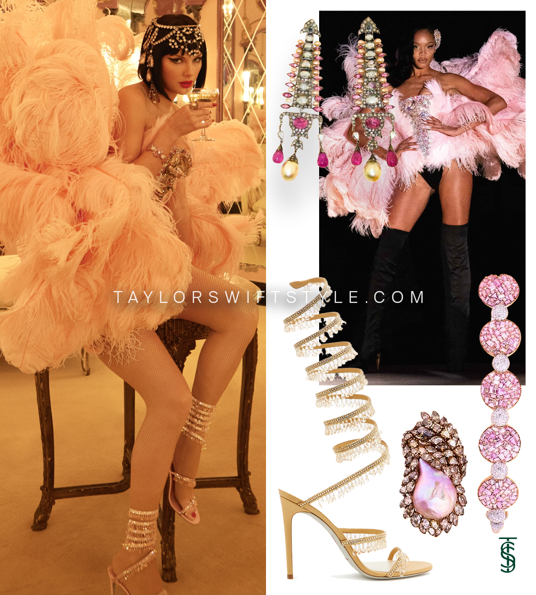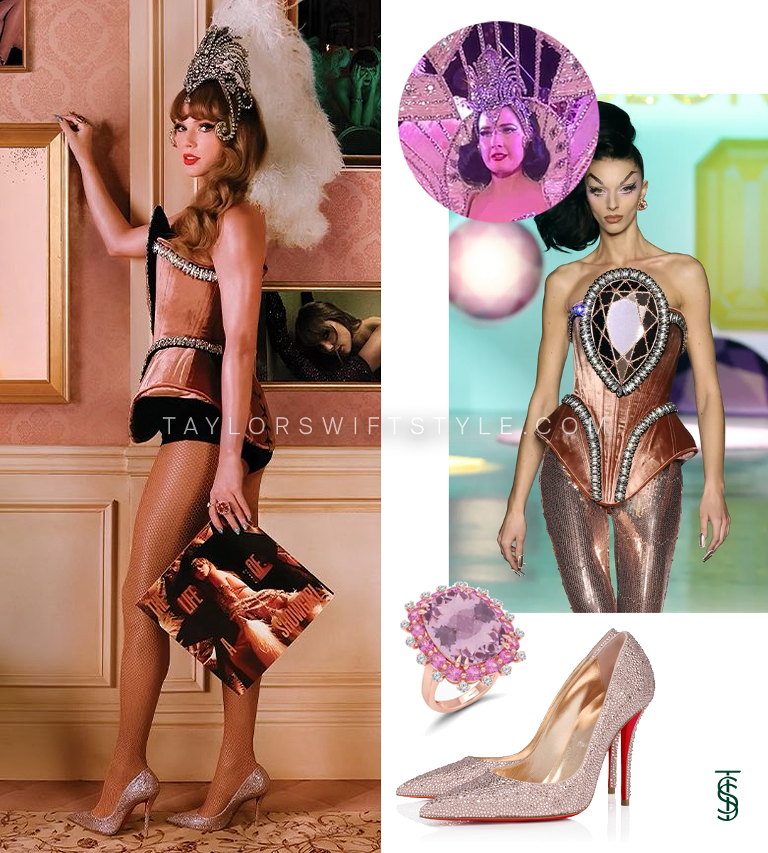 Taylor opted to pay true homage to showgirl aesthetic by pulling original costumes from the long-standing Vegas show Jubilee! for her album visuals.